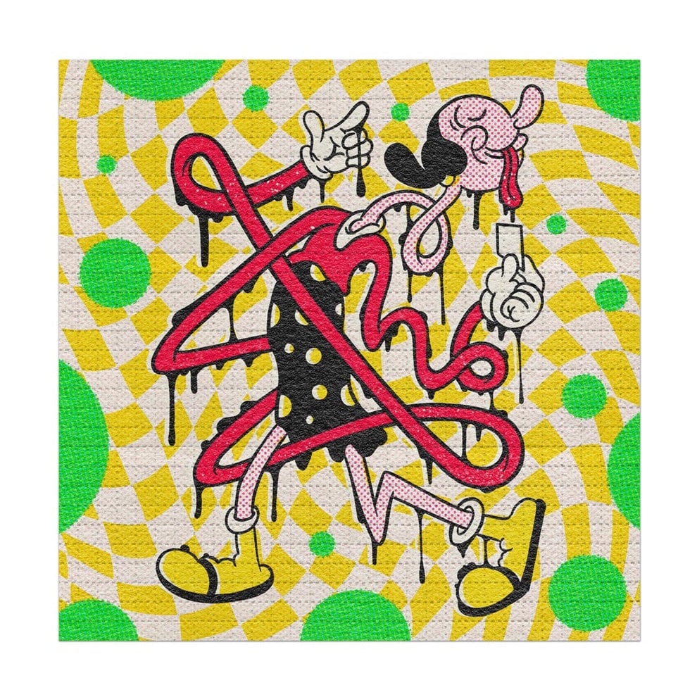 Olive's Oil by ZieroMuko. Archival Pigment Print on Perforated Blotter Paper ( perforations made by the Legend Zane Kesey) . 7.5 x 7.5 Inches. Limited Edition, This RUN comes signed & numbered by the artist and with a Certificate of Authenticity from 1XRUN.